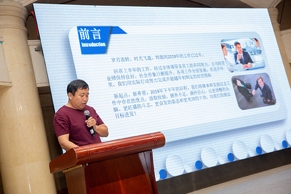 “挑戰(zhàn)自我,共創(chuàng)共贏”,2019年盛泰集團半年會于2019年9月12日下午4點在和合婚慶廣場順利召開。在半年會中,各公司領(lǐng)導(dǎo)對19年上半年的工作情況做出了總結(jié),并對自身存在的不足,以及下半年的工作的計劃作出了重要的匯報。